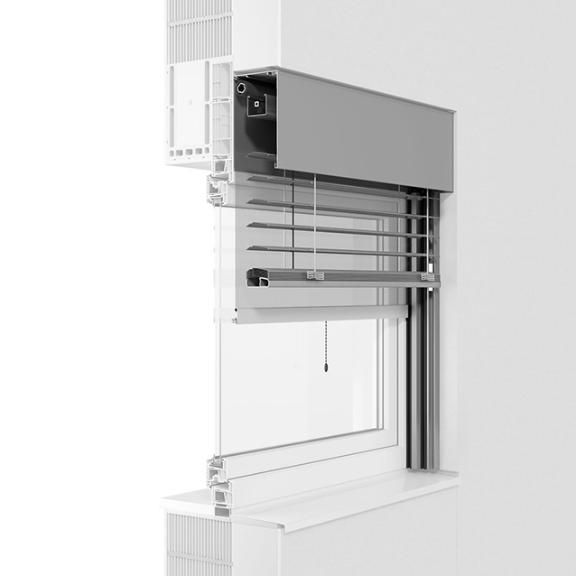 Sie wollen alle Vorteile eines Vorbausystems und die eines klassischen Fassadenraffstores gleichzeitig?